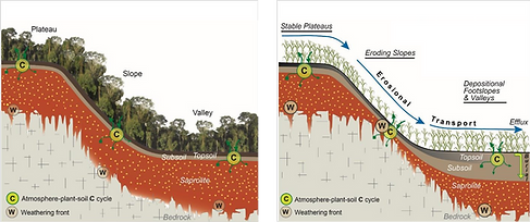 How does geochemistry control, interact with or mediate the severity of erosional disturbance on C cycling in the critical zone of tropical soils?